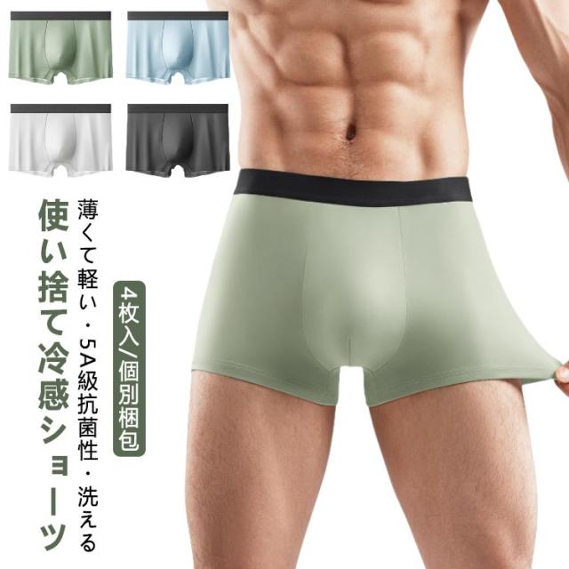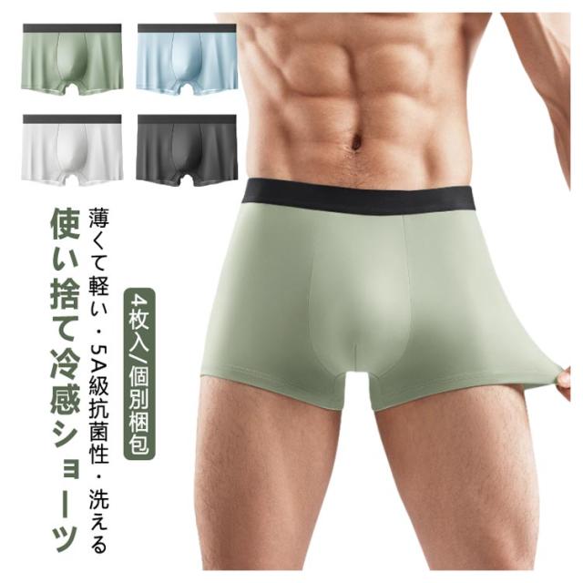 4枚入 冷感 抗菌 使い捨てパンツ メンズ 綿100% ショーツ ブリーフ 個別包装 使い捨て パンツ 接触冷感 男性用 下着 セット ボクサーパンツ コットン 綿 100 涼感 夏用 薄手 シームレス 旅行 業務 避難 携帯用 入院 介護 消耗品