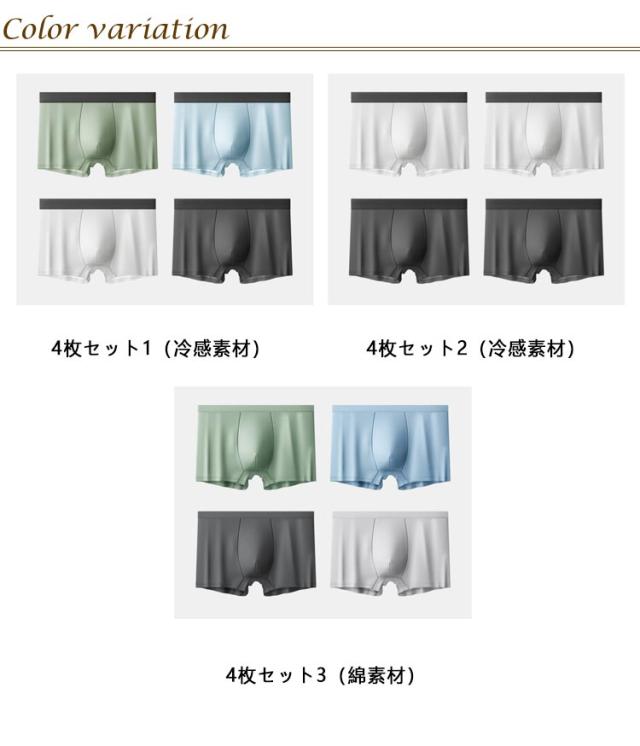 | 素材 | 4枚セット1、4枚セット2:(メーン素材)ポリエステル95%、ポリウレタン5%/(クロッチ部)綿100% 4枚セット3:綿100% |