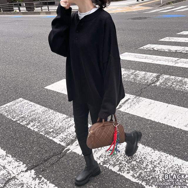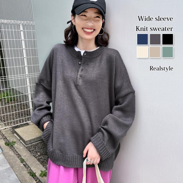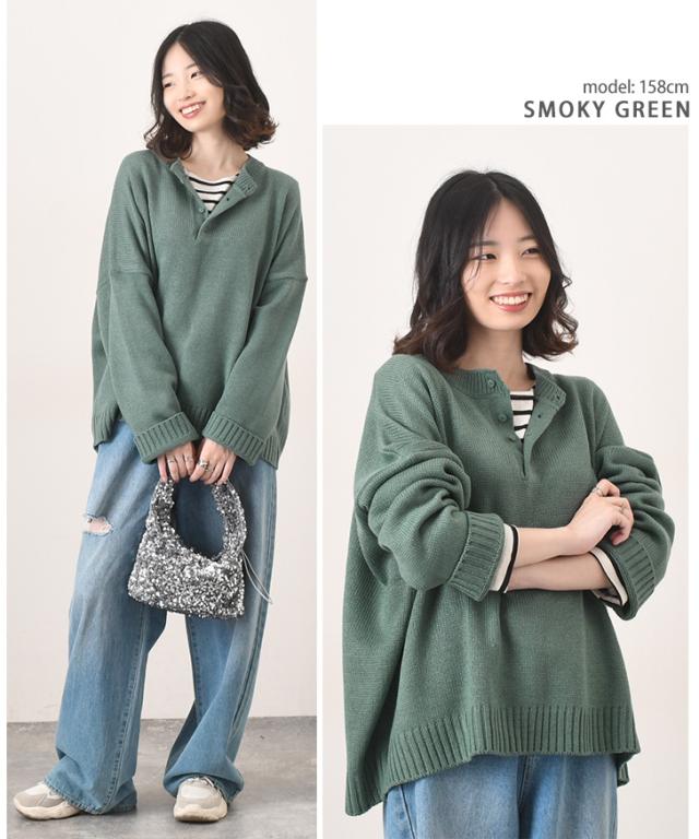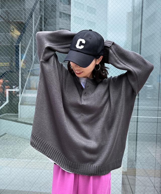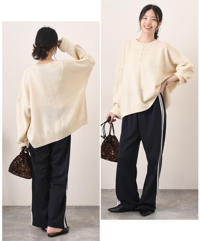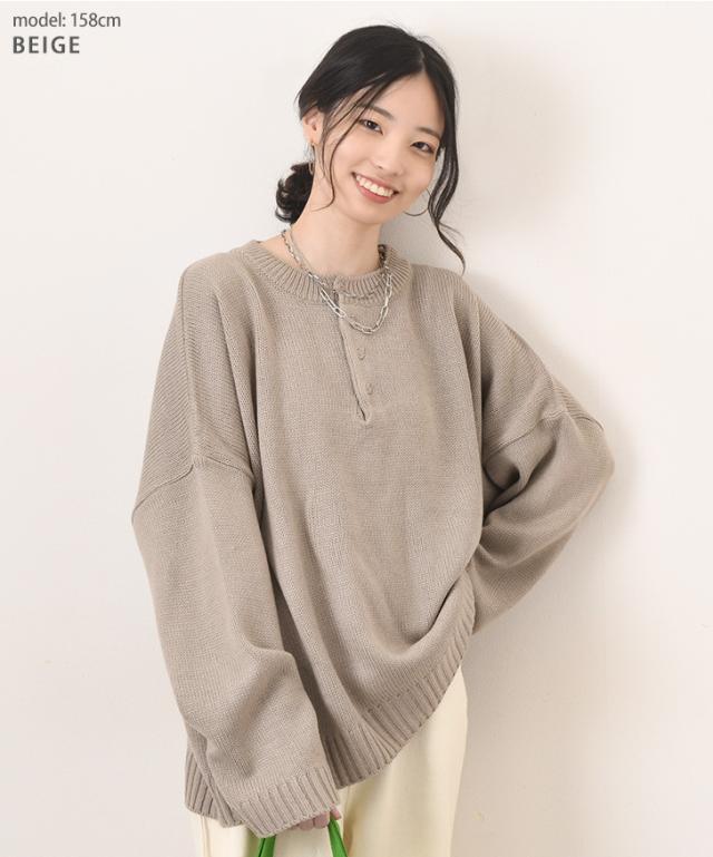 ●ヘンリーネックがこなれた印象を演出するニットセーター