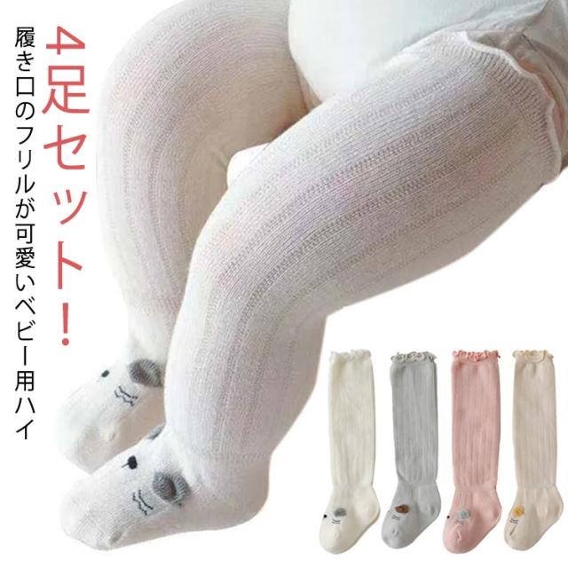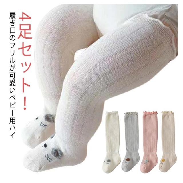ベビー 靴下 4足セット ハイソックス 赤ちゃん 子供用靴下 キッズ 新生児 靴下 ソックス 男の子 女の子 ベビー用品 可愛い かわいい おしゃれ フリル 無地 伸縮性抜群 伸びる 春 夏 秋 冬 0歳 1歳 2歳 3歳 ギフト プレゼント 出産祝い 送料無料