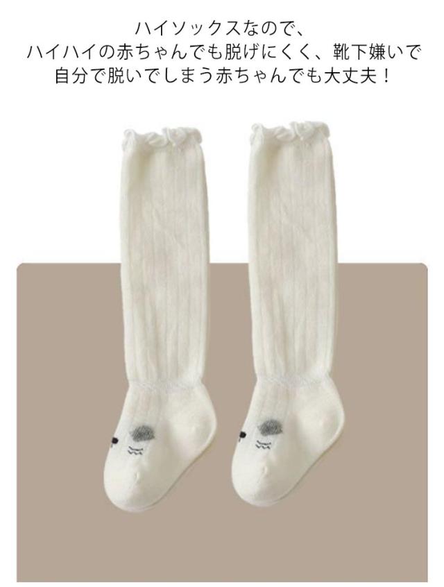 | 4足セット!履き口のフリルが可愛いベビー用ハイ シンプルな無地のソックスなのでどんな服にも合わせやすく、男女問わず使用できます。 履き口の伸びが強すぎないので太ももを締め付けず、痕がつきにくい! ハイソックスなので、ハイハイの赤ちゃんでも脱げにくく、靴下嫌いで自分で脱いでしまう赤ちゃんでも大丈夫! | |