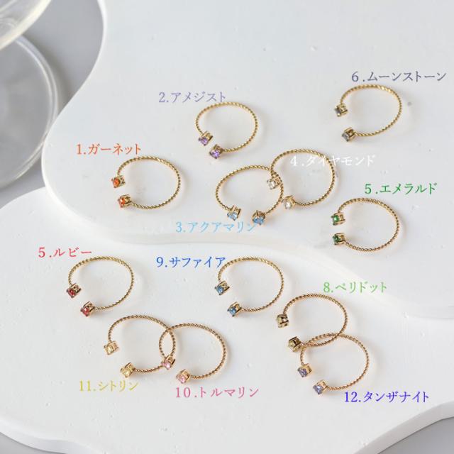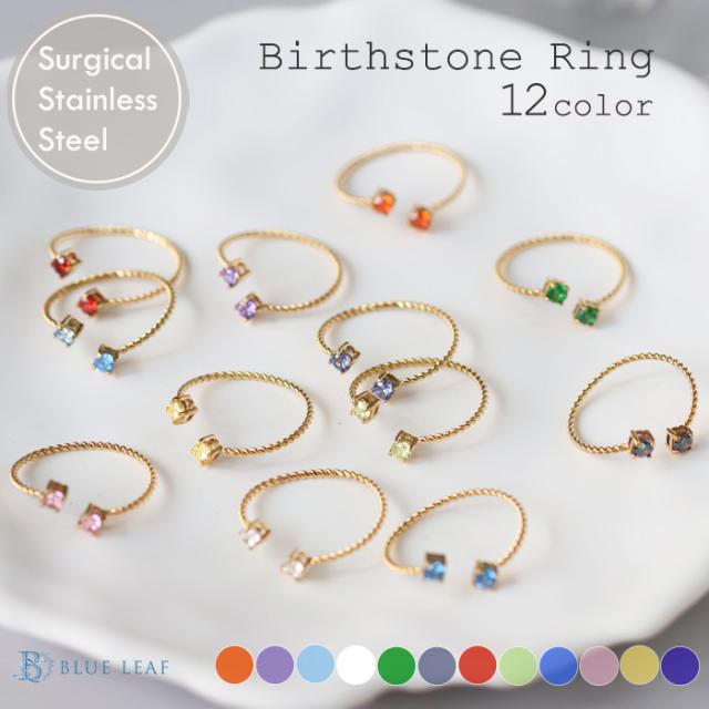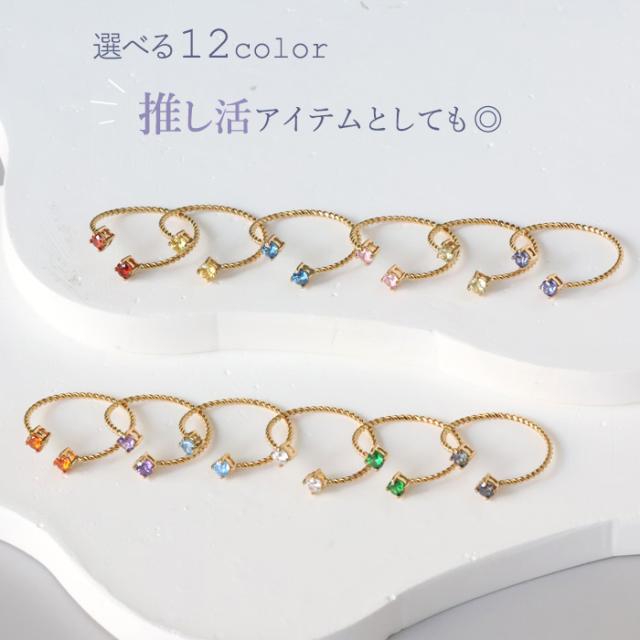 リング 指輪 誕生石 選べる 12色 サージカルステンレス キュービックジルコニア CZダイヤ フリーサイズ サイズ調整可能 キラキラ k18コーティング ニッケルフリー 重ね付け お守り 推し活 推しカラー