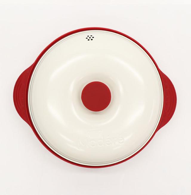 ●加熱調理後、フタ本体、鍋底は高温になっていますので、必ずミトンなどを使ってシリコン製のノブ(本体・フタ)をもってご使用ください。