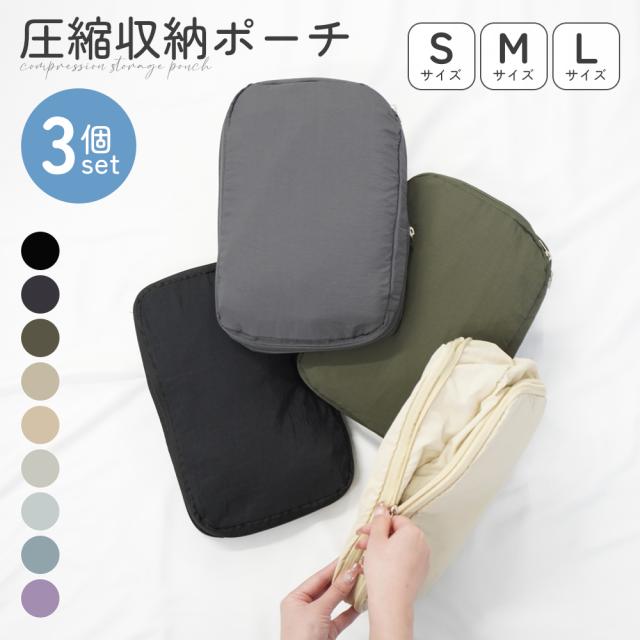 トラベルポーチ 旅行圧縮バッグ 収納ポーチ 圧縮袋 圧縮ポーチ 圧縮バッグ 旅行バッグ 衣類圧縮収納 出張 旅行 便利グッズ 衣類仕分け 軽量 大容量 簡単圧縮 撥水 防水 ナイロン コンパクト ファスナー シンプル 無地 温泉 服 3点セット
