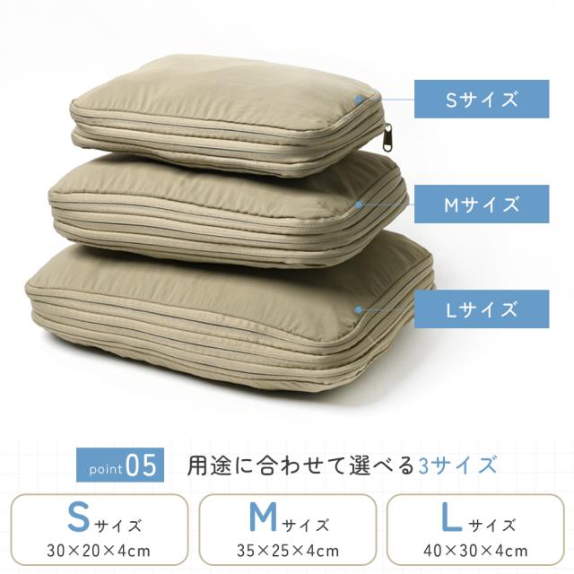 チャックを閉めるだけで圧縮可能なケース。