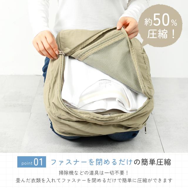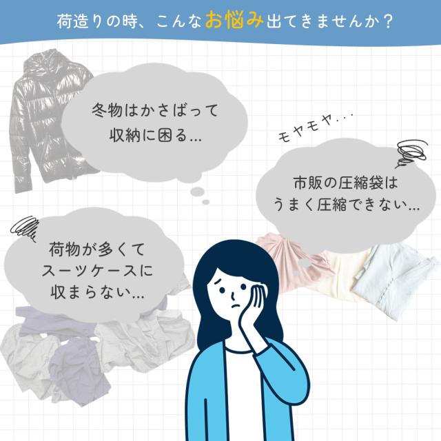ファスナー圧縮で衣類スペース50%節約!