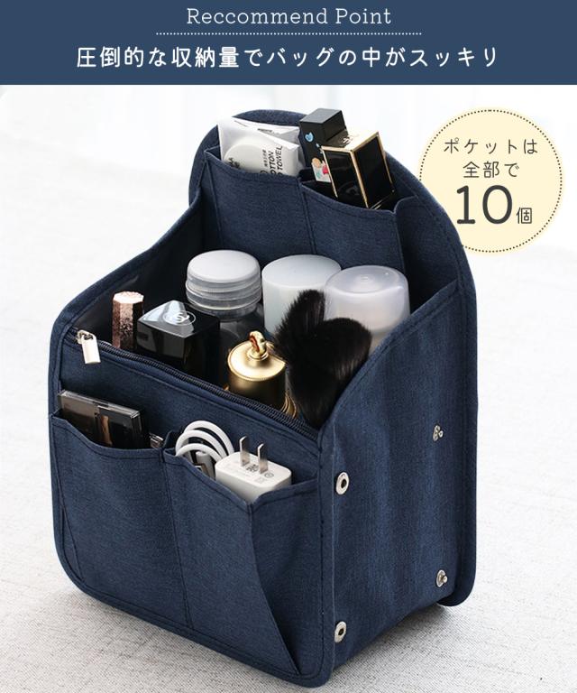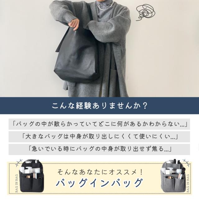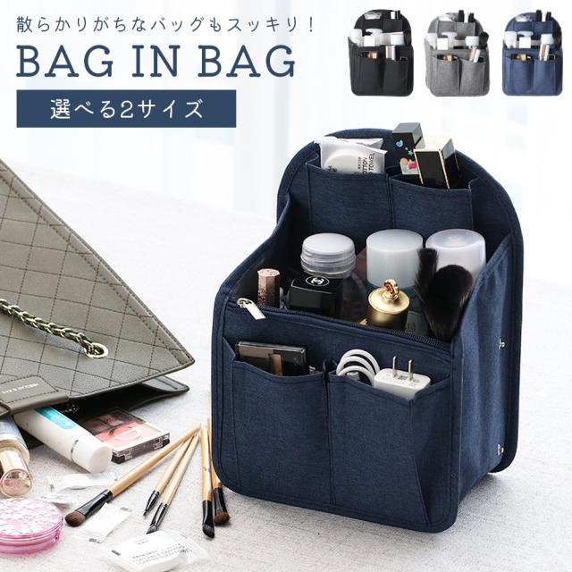 縦型デザインのバッグインバッグ。