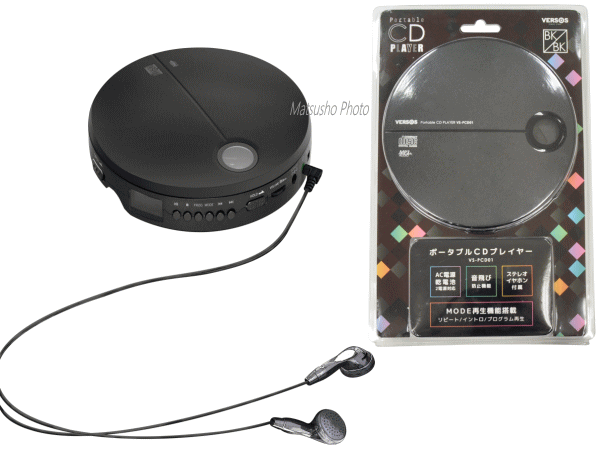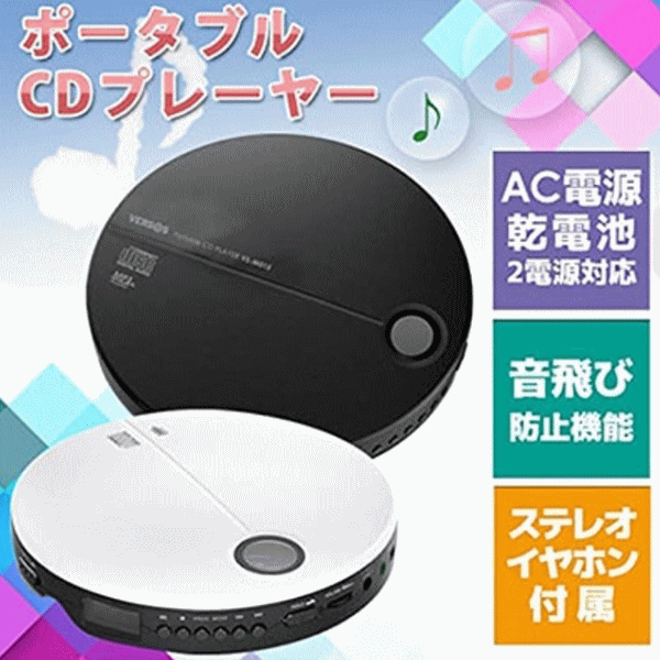 ベルソス CDプレーヤー ポータブルCDプレーヤー AC電源 乾電池式 2電源対応 薄型 音飛び防止 ステレオイヤホン付き VERSOS ポータブルCDプレーヤー VS-PCD01 ブラック×ブラック