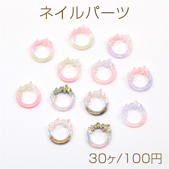 ネイルパーツ リングフレームパーツ ジェルネイルデコパーツ 貼付けパーツ UVレジン封入パーツ 樹脂製 14mm (30ヶ)