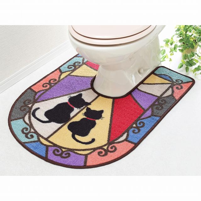 ステンドグラス調 トイレマット ねこ カラフル インテリア タフト織 シルエット