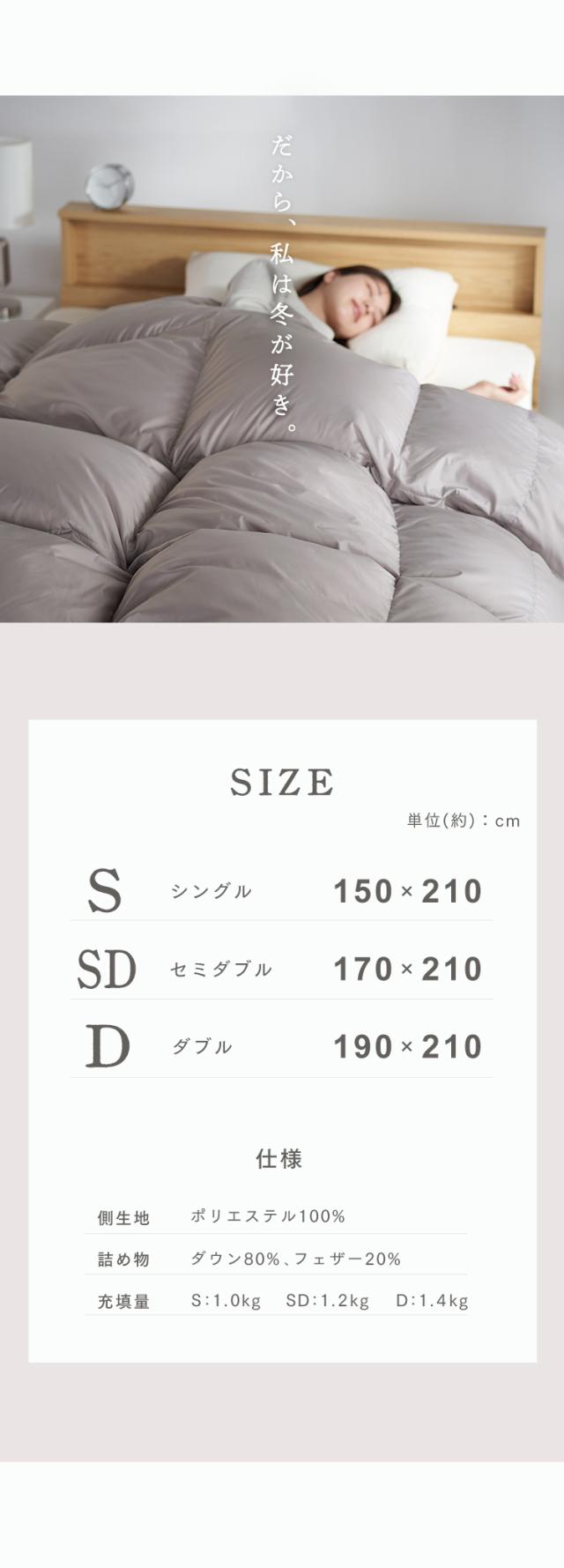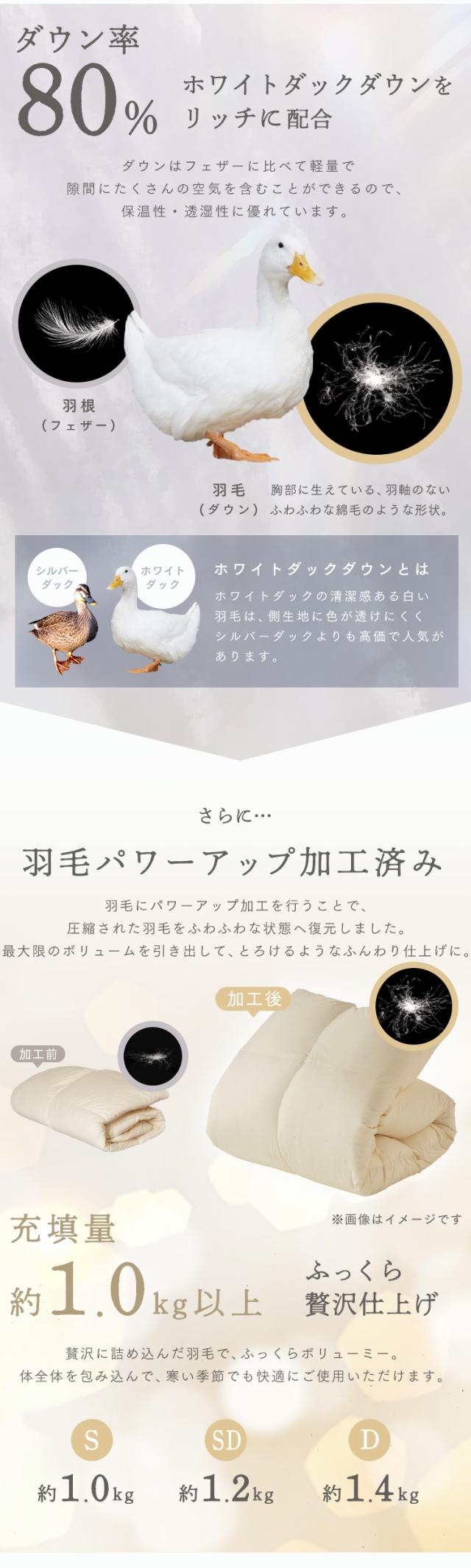 ダックダウン 掛布団 暖かい 羽毛掛け布団 ホワイトダックダウン80% SDL 全2色 羽毛布団 軽量 寝具 パワーアップ加工 洗える 日本製 タンブル乾燥可 清潔 ループ付 立体キルト 送料無料
