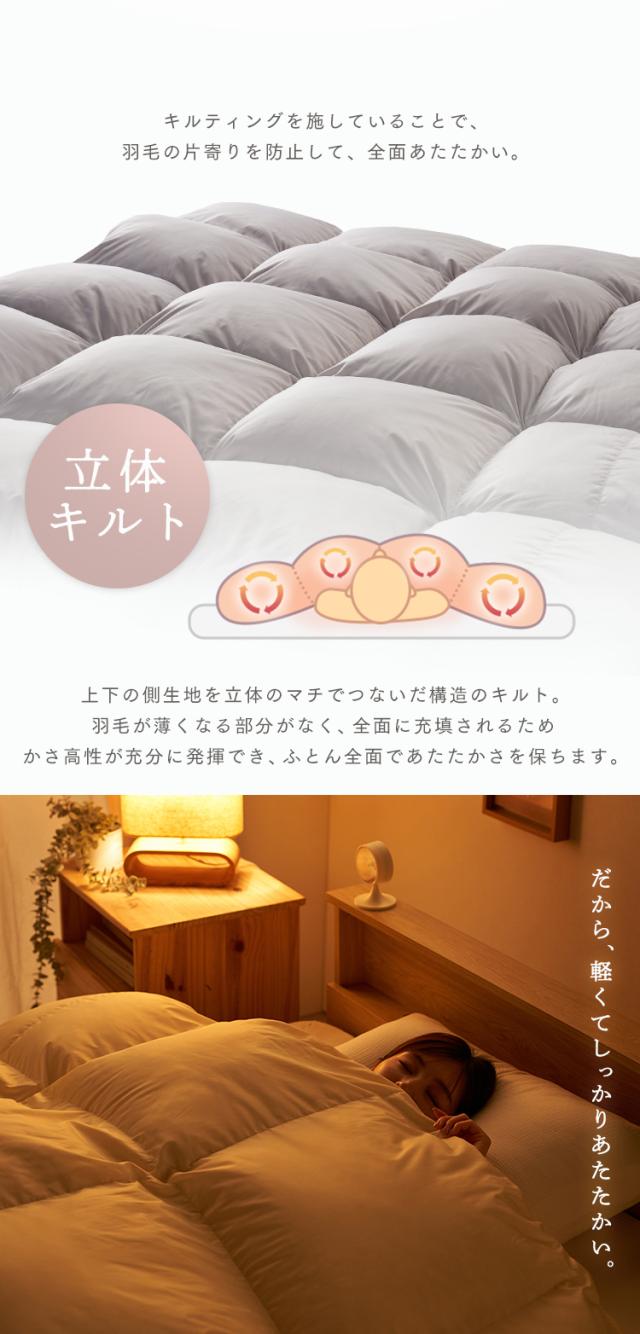 ◇立体キルト構造は、羽毛が薄くなる部分がなく布団全体であたたかさを保ちます。