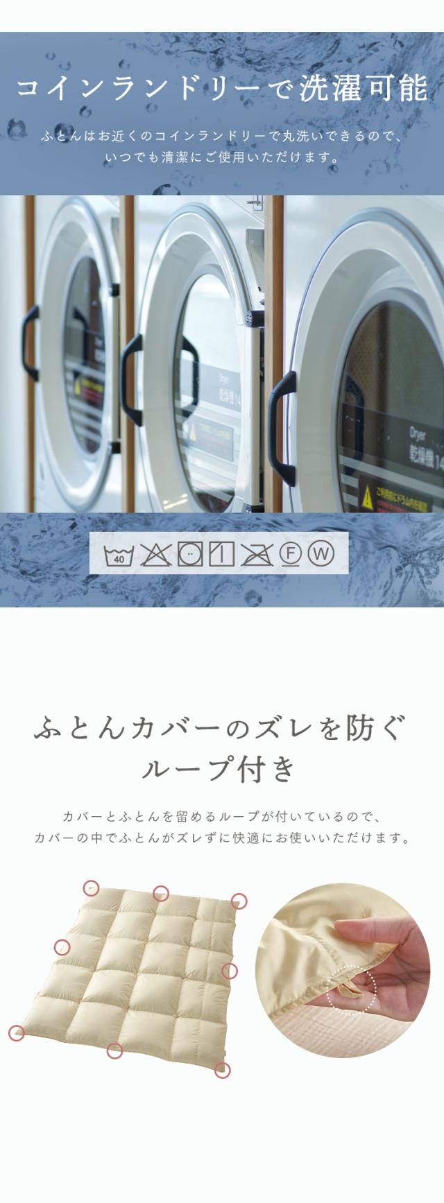 ◇カバーとふとんを留めるループが6か所付いており、ズレを防ぎます。