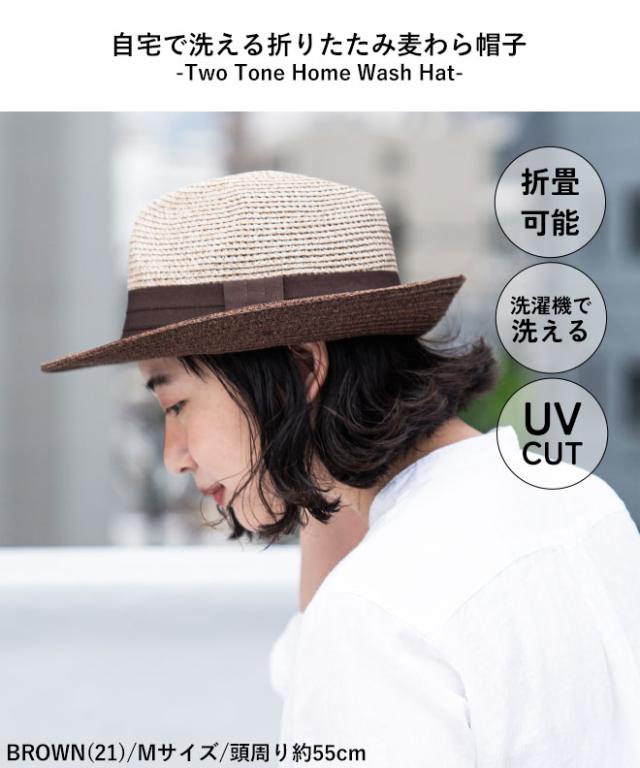 Two Tone Home Wash Hat ツートーンホームウォッシュハット ハット 麦わら 帽子 メンズ レディース 大きいサイズ 60cm たためる 洗える ツバ広 uv 折りたたみ