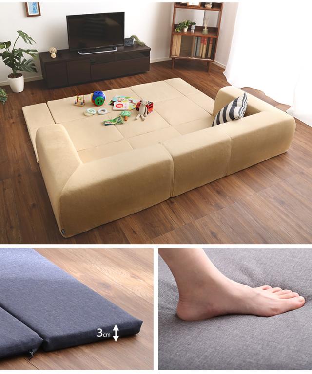 完成品 日本製 フロアソファ コーナーソファ ロングソファ フロアマット ロータイプ ローソファ カバーリングソファ 2way 2人掛けソファ 洗える ウォッシャブル シンプル おしゃれ Plateau(プラトー) Mサイズ 6色対応