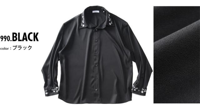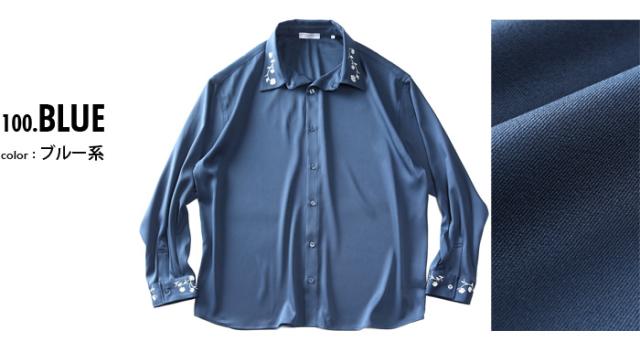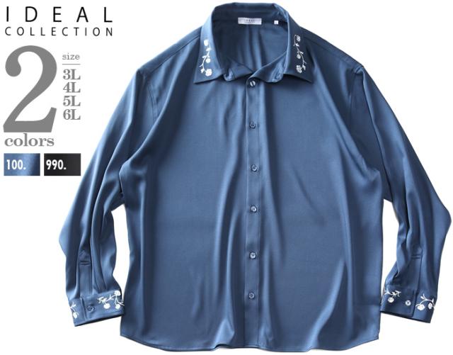 大きいサイズ メンズ IDEAL COLLECTION 長袖 ツイルストレッチ 刺繍 カジュアル シャツ 61642000za