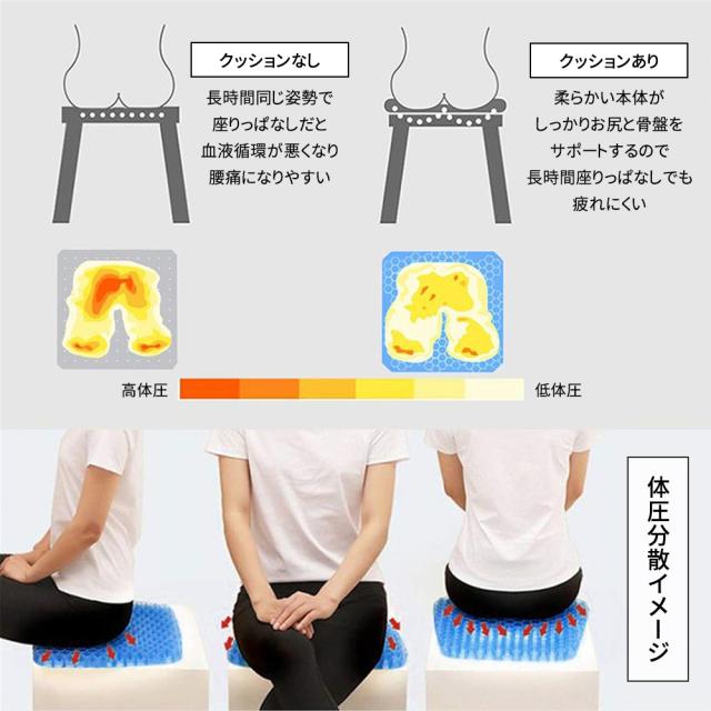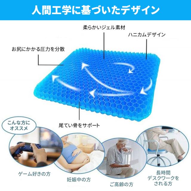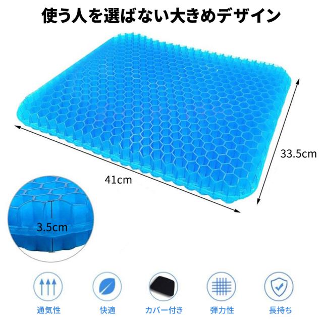 ジェルクッション ハニカム構造 特大 ゲルクッション 無重力クッション クッション 座布団 オフィス用 健康クッション 車用チェアパッド 座面 サポートクッション ジェルシート エッグクッション カバー付き