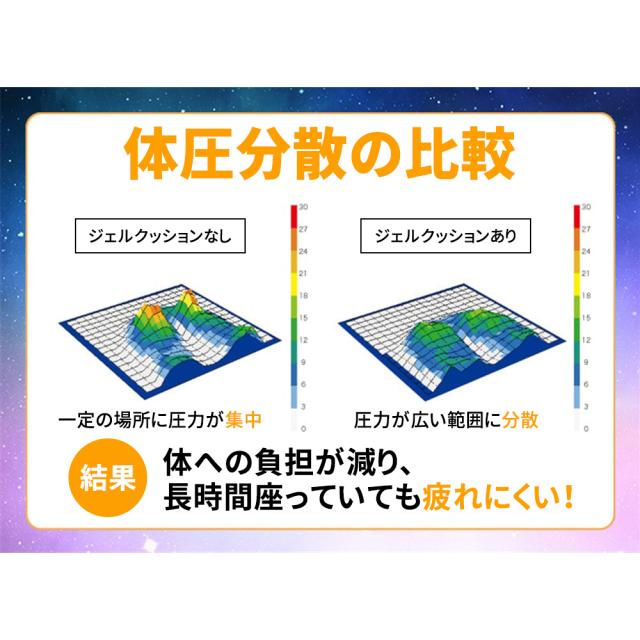 高弾力性ゲル恒温素材を使用し、適切な硬さが体圧を均一に吸収&分散でき、