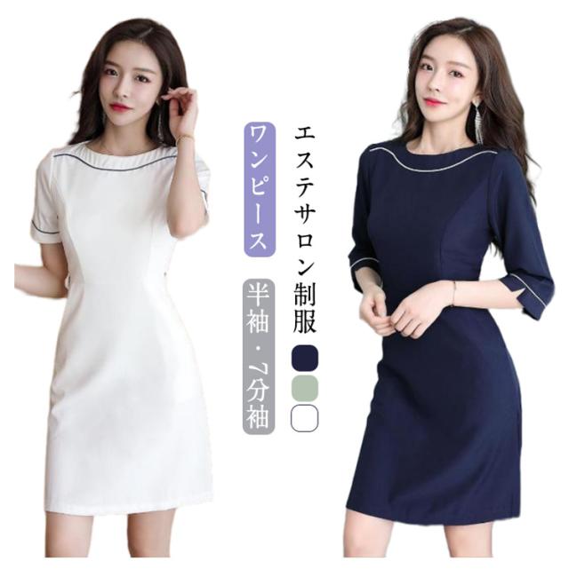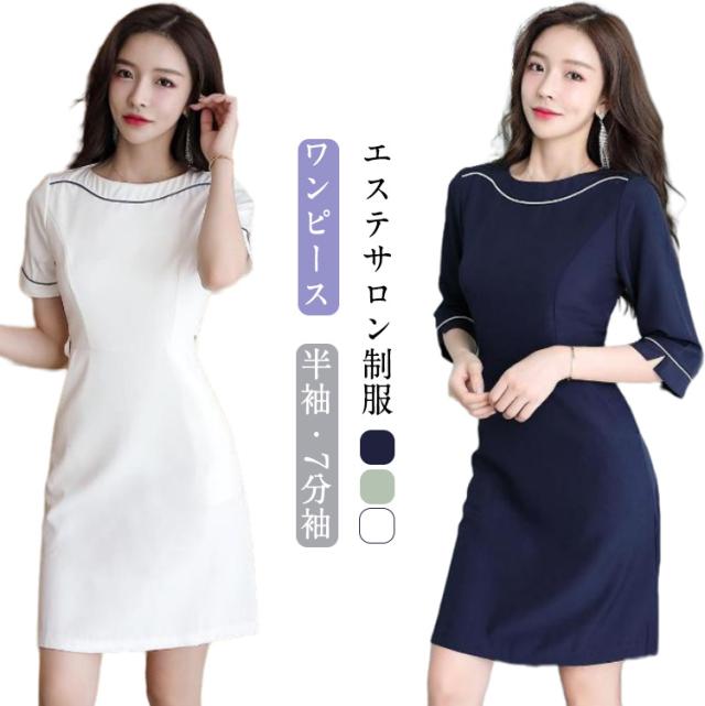 レディース エステサロン サロン通勤 ワンピース 制服 女性 7分袖 半袖 医療 ネイル 美容 エステ 受付 サロン 介護 事務 制服 ストレッチ 歯科衛生士 ユニフォーム