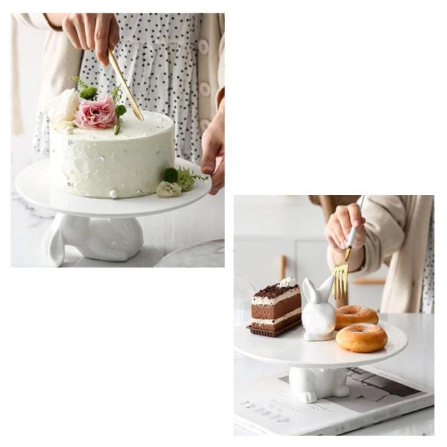 白 ケーキプレート 兎 ケーキ台 兎型 おしゃれ 陶器 1段 ホワイト カフェ インテリア ケーキスタンド かわいい ケーキ ウサギ ホームパーティ ディスプレイ ティータイム クリスマス 誕生日 バースデー お祝い アクセサリー アニマル 動物 ケーキトレー