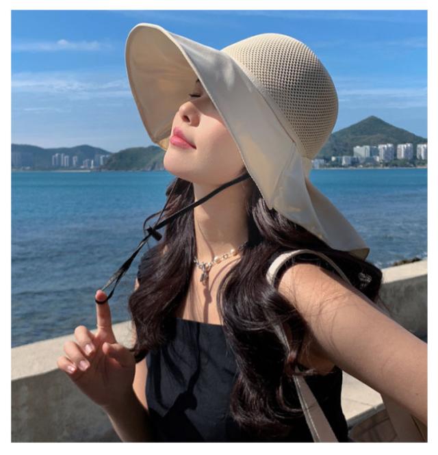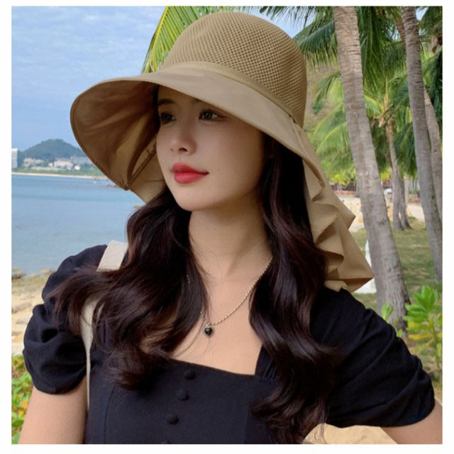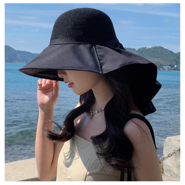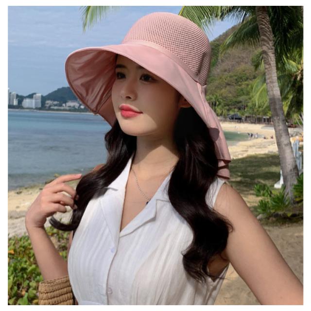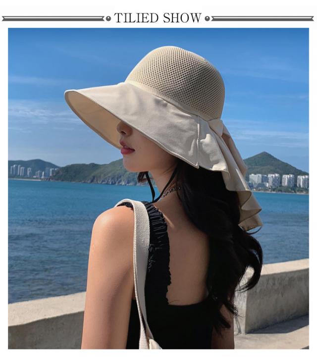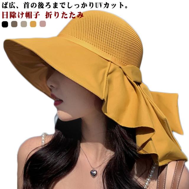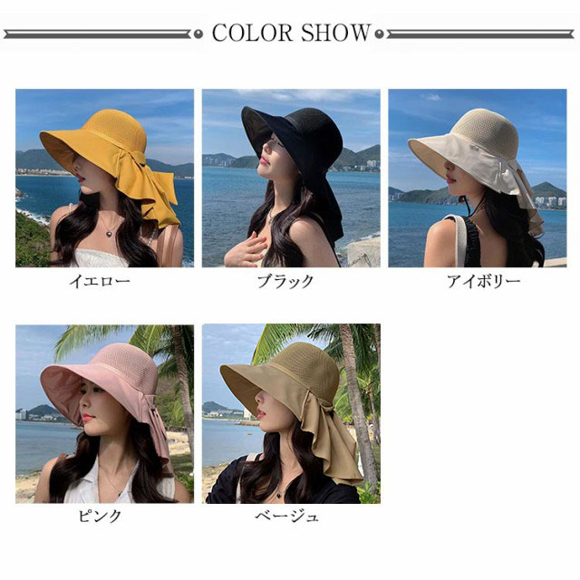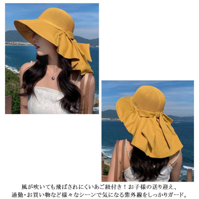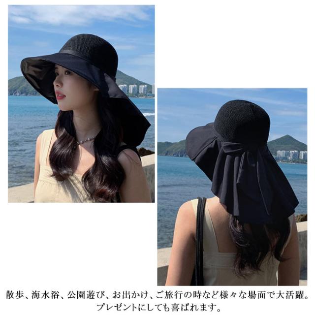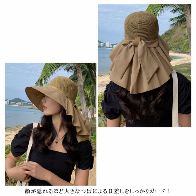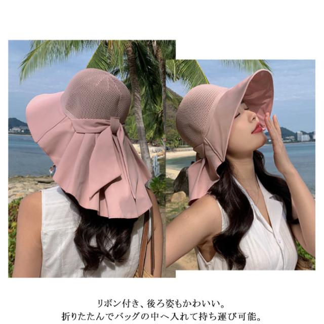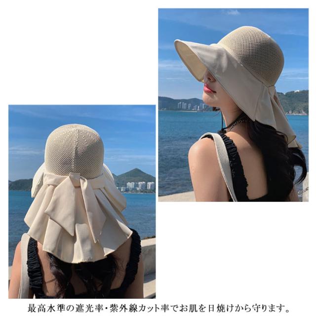 つば広 UVカット レディース リボンたれ付き ハット 自転車 帽子 首の後ろ 通気 日よけ 日除け帽子 完全遮光 日焼け防止 日焼け対策 小顔効果 メッシュ レディース あごひも付 飛ばない 遮熱 リゾート 海 水着 折りたたみ 洗える かぶる日傘