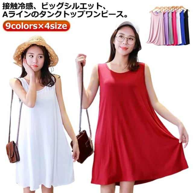 | 9colors×4size 接触冷感、ビッグシルエット、Aラインのタンクトップワンピース | |