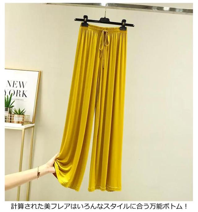 | 全8色選べる!楽ちん美脚の涼感素材ワイドパンツ! 薄手で接触冷感素材を採用する。 穿き心地がたまらなく心地良い。ひんやり薄手の生地、この夏、持っていて間違いなしの1枚! 計算された美フレアはいろんなスタイルに合う万能ボトム! ヨガやエアロビクスなどのスポーツウェアとして、おやすみタイムのパジャマやリラックスできるルームウェアとしても◎ | |