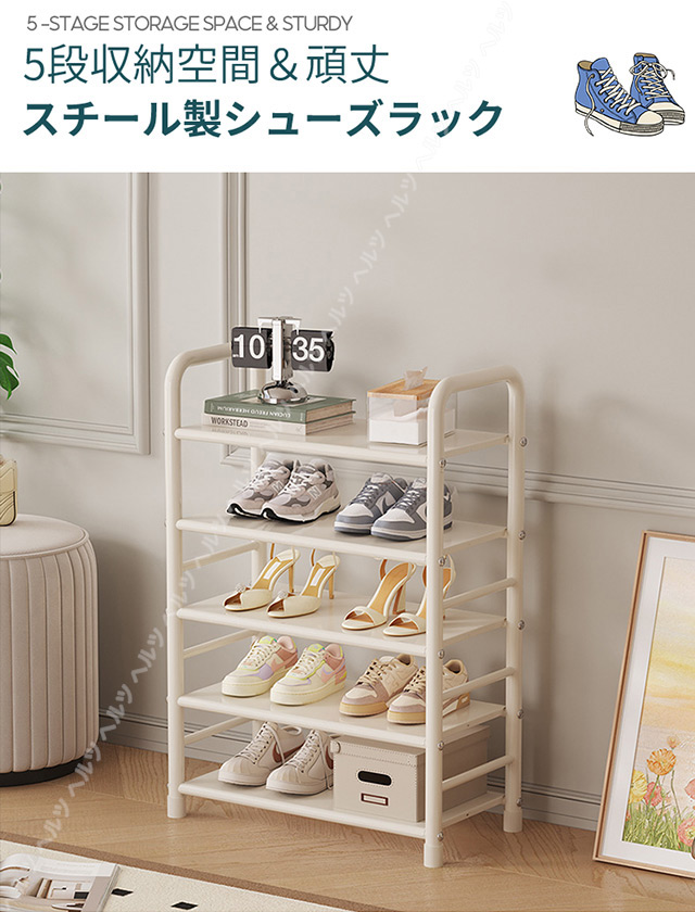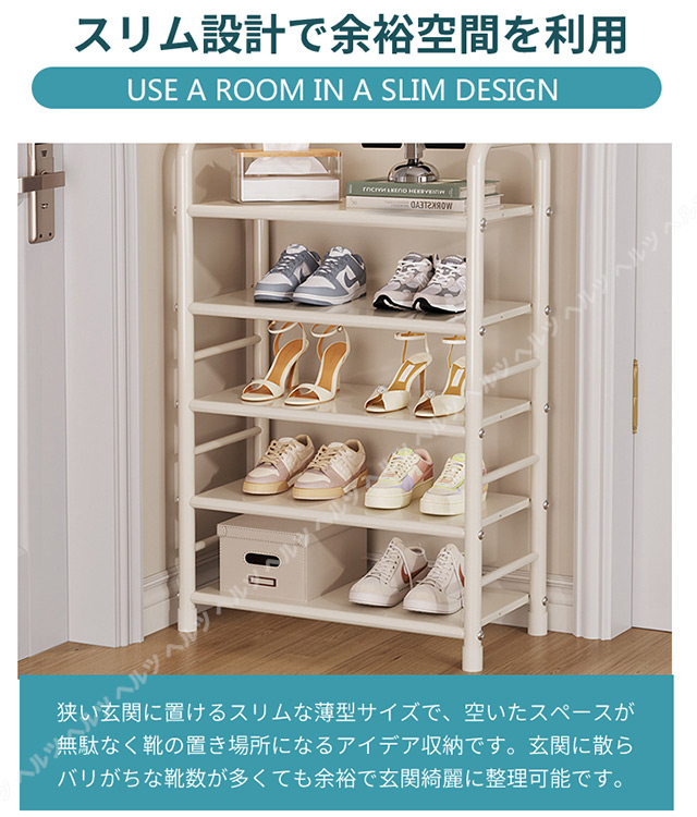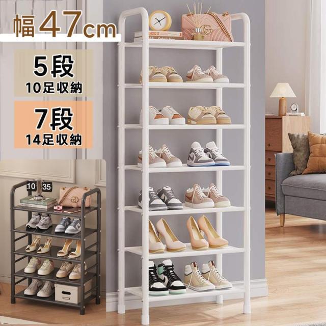 「クーポン配布中」「即納」「5/7段式」シューズラック スリム シューズラック 省スペース 下駄箱 幅47cm シューズラック 大容量 玄関収納 収納棚 組み立て式 靴箱 収納棚 本棚 安定感 シューズボックス 金属 靴収納ラック おしゃれ 母の日 敬老の日 プレゼント