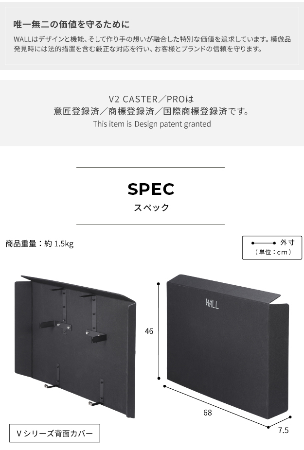 WALL(ウォール) インテリアテレビスタンド V2 CASTER・PRO対応 背面カバー BACK COVER 追加オプション 配線カバー ケーブル収納 保護カバー フレームカバー HDDケース 収納ケース 静電気防止 ダストカバー おしゃれ
