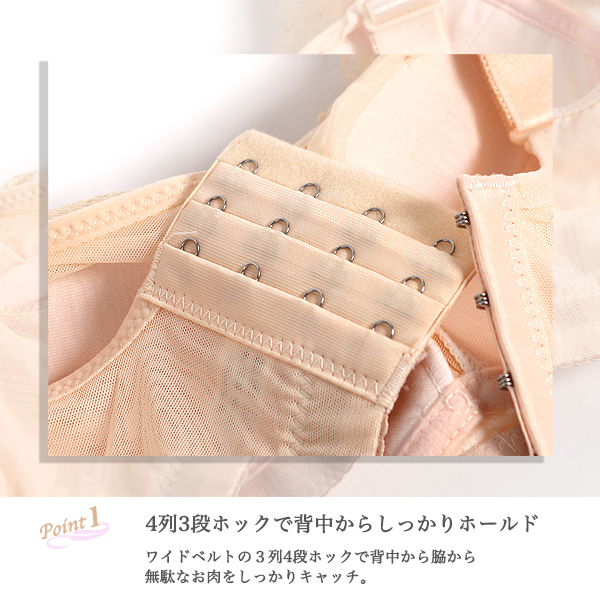 | 仕様 | パッド :無 パッド取り外し:不可 ワイヤー :無 肩紐取り外し :後ろのみ可能 ホック :4段4列 |