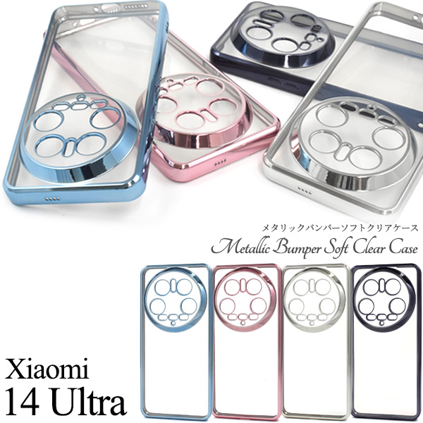 スマホケース Xiaomi 14 Ultra用 メタリックバンパー ソフトケース ソフトクリアケース 柔らかい TPU 着脱簡単 スマホ カバー 背面 保護 カバー シャオミ