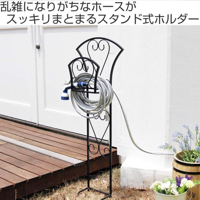 ホースハンガー ハート ( ホーススタンド ホースホルダー ホース リール 収納 スタンド式 自立式 アイアン シンプル おしゃれ 花壇 ベランダ バルコニー ホース掛け ホースフック ハンガー 園芸 ガーデニング 庭 アンティーク )