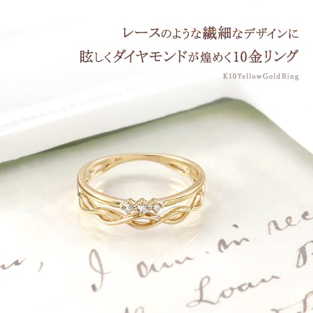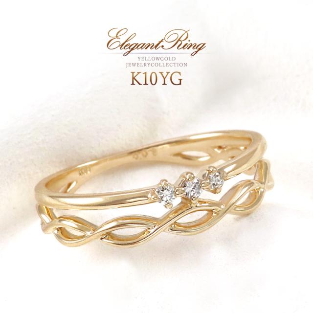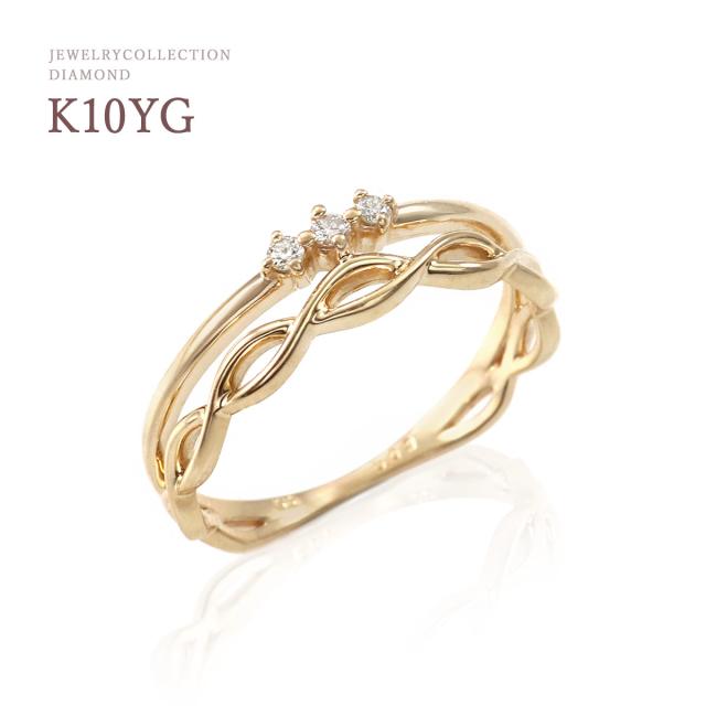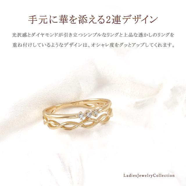 ピンキーリング 3号 4号 5号 6号 7号 ダイヤモンド 10金 イエローゴールド ジュエリー 10K K10 レディース アクセサリー 指輪 ピンキー リング 宝石 天然石 重ね付け 2連 可愛い 透かし おしゃれ プレゼント 記念日 誕生日 彼女 嫁 女性 4月 誕生石 本物 母の日 ギフト 2026