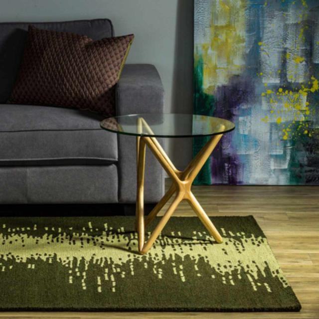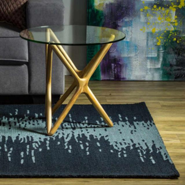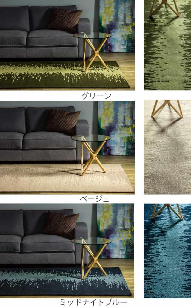 川が流れるような自然を想起させるデザインのラグです。グラデーションのような色使いが美しく、ワンランク上の空間を演出します。ハンドタフテッドという手織りと機械織りの中間のような製法で、一枚一枚丁寧に作られています。