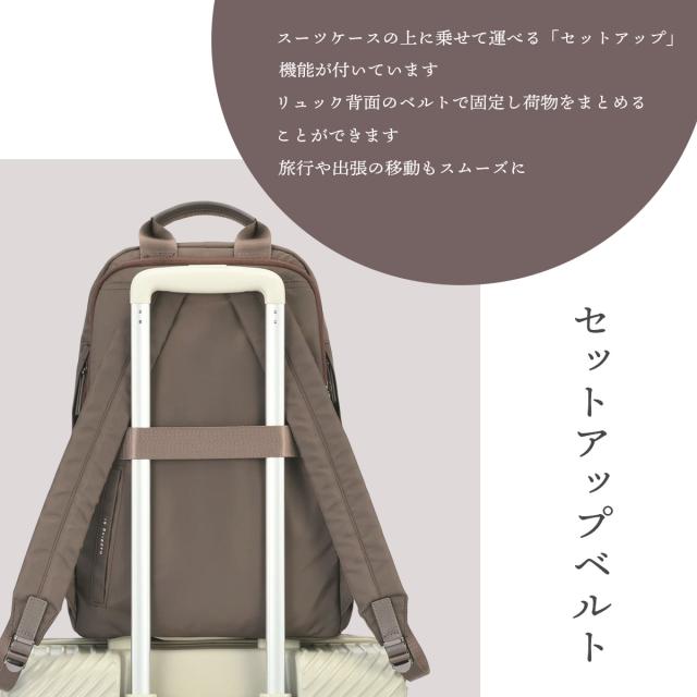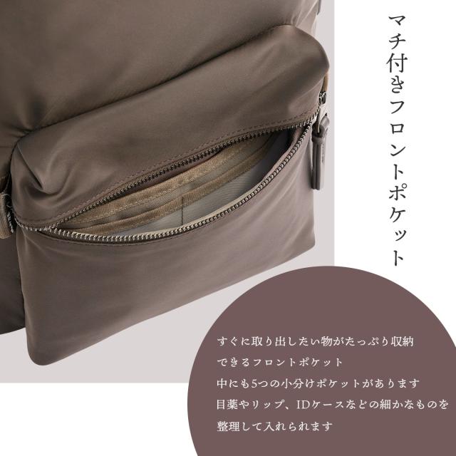 | すっきり軽やかに通勤したい。 シンプルな見た目でもポケットが充実している、オンオフどちらでも活躍するスリムなリュックです。軽快な使い心地で、通勤もレジャーも毎日使っていただけます。 使いやすいと人気の「マチ付き外ポケット」を採用。外から直接アクセスできる13.3インチ対応のPCスリーブが付いていながらも700g以下!という軽さと、柔らかできれいめな印象を与える細かなディティールが特徴です。縦ラインを強調する細身のデザインなので、小柄な女性の背幅からはみ出ず、カジュアルになりすぎずにすっきりと持つことができます。電車通勤などで座った時に、膝の上でコンパクトに抱え込みやすいサイズ感にもこだわりました。 【A4 ジャストサイズのおすすめポイント】 書類やPCをデイリーに持ち運ぶという方からの人気が高い「外から直接アクセスできるPCスリーブ」を採用しています。スリムですがマチをしっかりとってあるため容量も17Lと十分。荷物が多め方にもお勧めのサイズです。 【サイズ】 クリアフォルダーに入れたA4サイズの用紙がぎりぎり入るサイズ感。13.3インチPCも収納可能です。少し小さめなサイズ感で、小柄な方やA4書類がちょうど入るサイズをお探しの方におすすめです。 ※A4クリアホルダーサイズ:W21.7×30.7cm ※PCサイズ:W31×H21×D1cmで計測 【機能】 簡単なのにきれいに整頓できて使い勝手も良い、ストレス知らずな収納を目指しました。 |