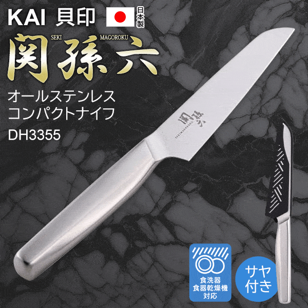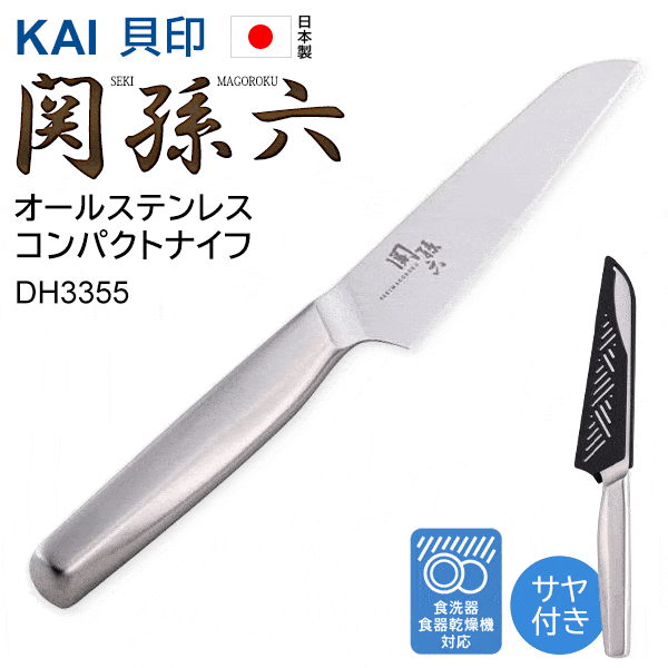 送料無料 !( メール便 ) 貝印 コンパクトナイフ 関孫六 サヤ付き 日本製 包丁 オールステンレス製 食洗機対応 蝶理器具 アウトドア 鞘付き【 キャンプ 果物ナイフ ペティナイフ フルーツナイフ 新生活 キッチン用品 3000円 以下 の商品】 送料込 3M◇ 関孫六ナイフ