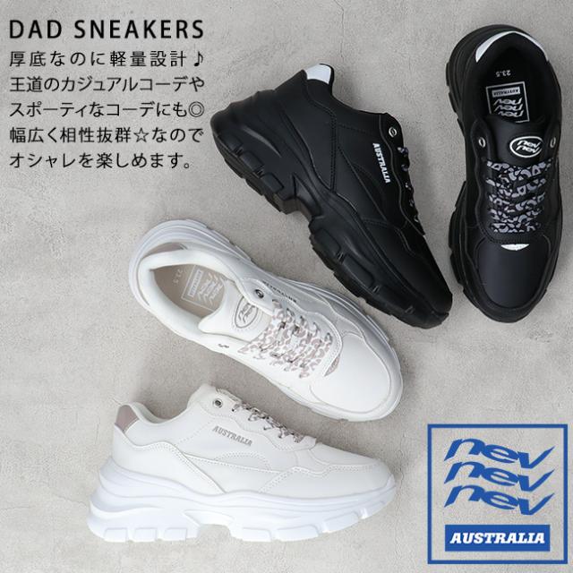 スニーカー レディース 厚底 歩きやすい 軽量 ダッドスニーカー ローカット おしゃれ かわいい ネブ NEV652 黒 白 通学 靴 シューズ