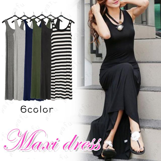マキシワンピース (FW13#) 日本国内当日発送 6color タンクワンピース 無地 ノースリーブ Uネック 大きいサイズ 着痩せ ロングワンピース レディース aライン
