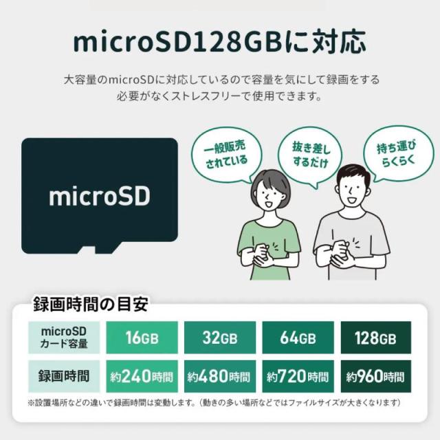 スピーカー・マイクを搭載しており、映像データに音声記録することができる他、スマホを使用してカメラから声を出すことも可能です。