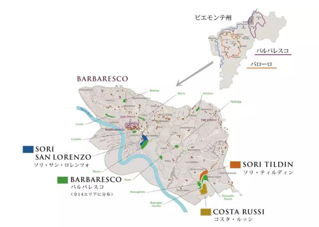【アンジェロ氏は、バルバレスコにある区画からブルゴーニュのグラン・クリュ、プルミエ・クリュのワインのように、単一畑のワインを造り始めました。1967年に初めて、バルバレスコ最高と評される区画から単一畑のソリ・サン・ロレンツォが誕生。続いてソリ・ティルディン、コスタ・ルッシと計3種類の単一畑を造り始めました。その後、バローロでも同様、コンテイザとスペルスという2種類の単一畑キュヴェをリリース。ブルゴーニュのようなガヤの単一畑のワインは世界中で大人気となり、大変高い評判を得ました。