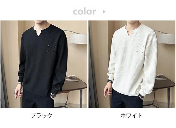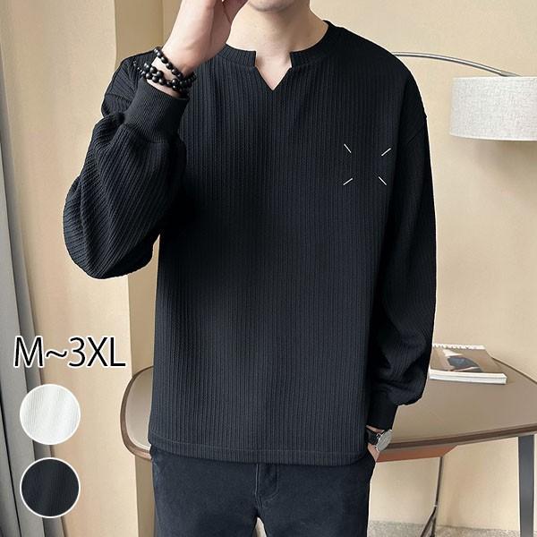 メンズトップス カットソー 長袖 スリット・ネック 大きいサイズ シンプル 無地 カジュアル カッコイイ 春 秋 ei236t2cyxq