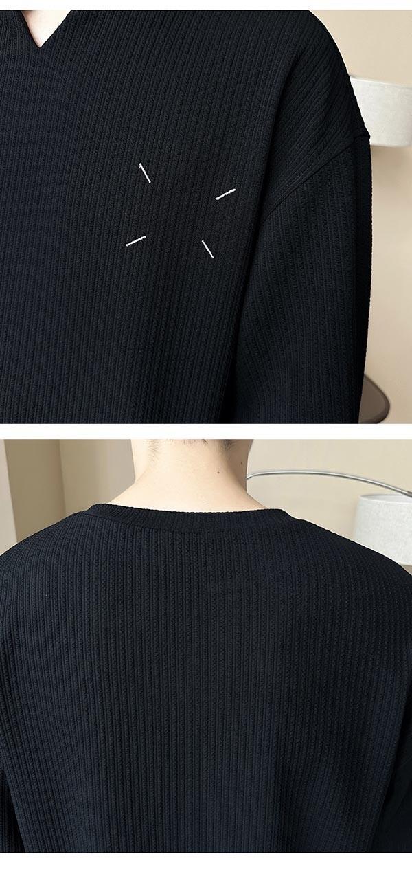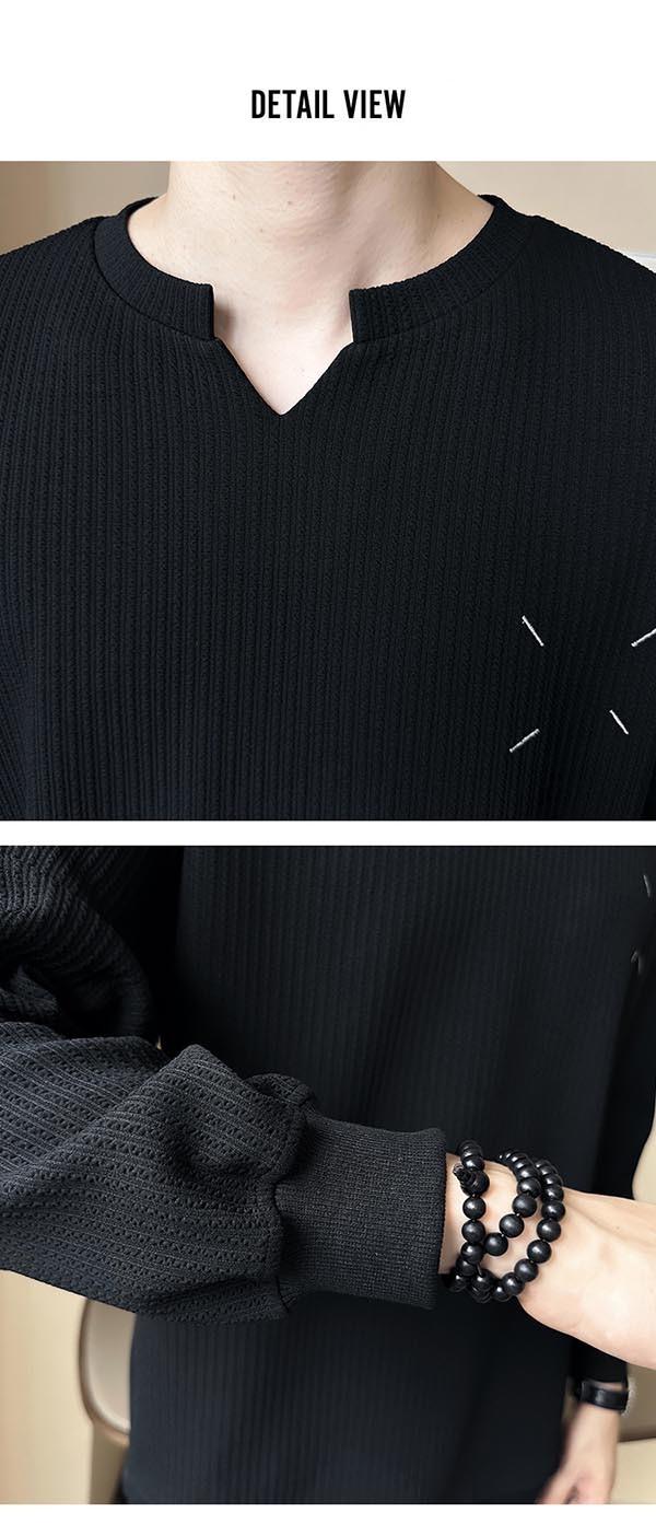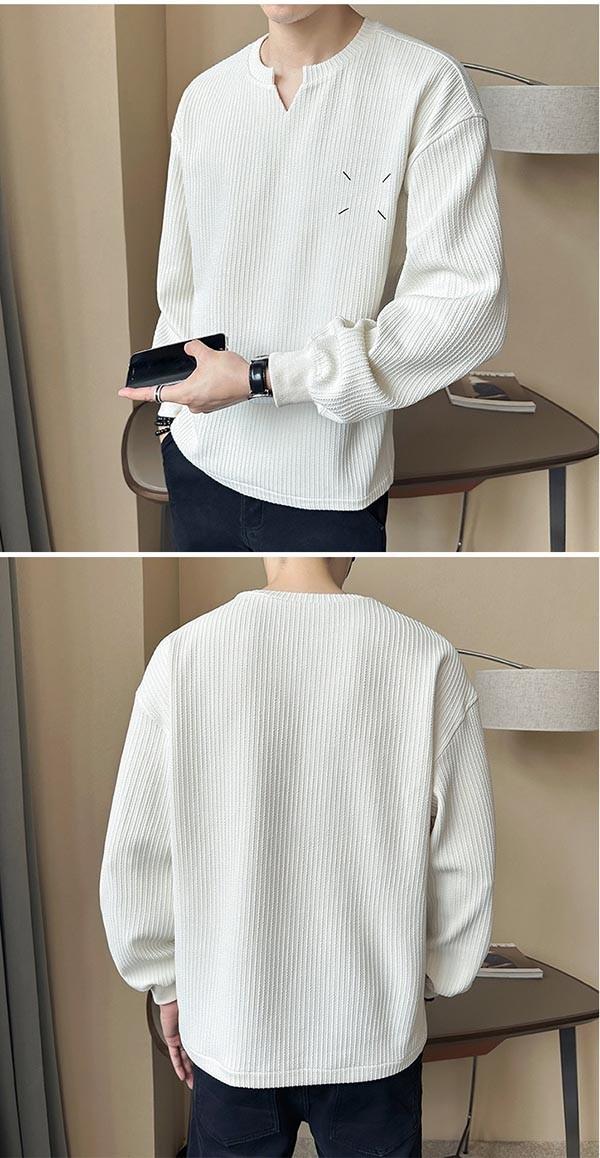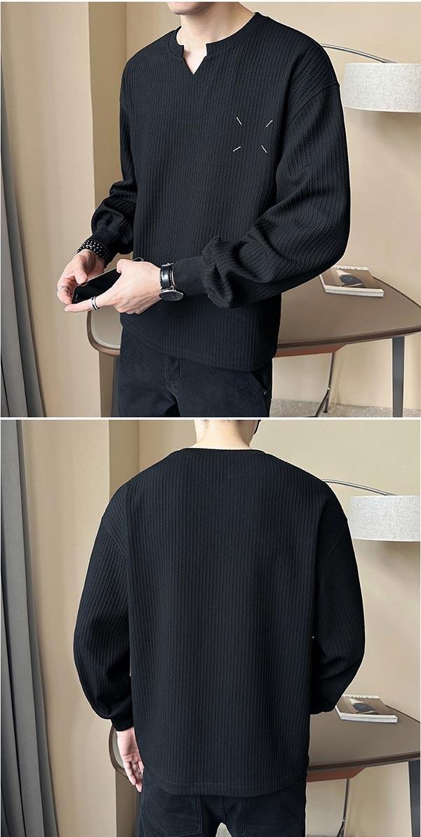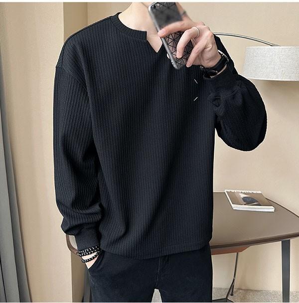 メンズトップス カットソー 長袖 スリット・ネック 大きいサイズ シンプル 無地 カジュアル カッコイイ 春 秋
