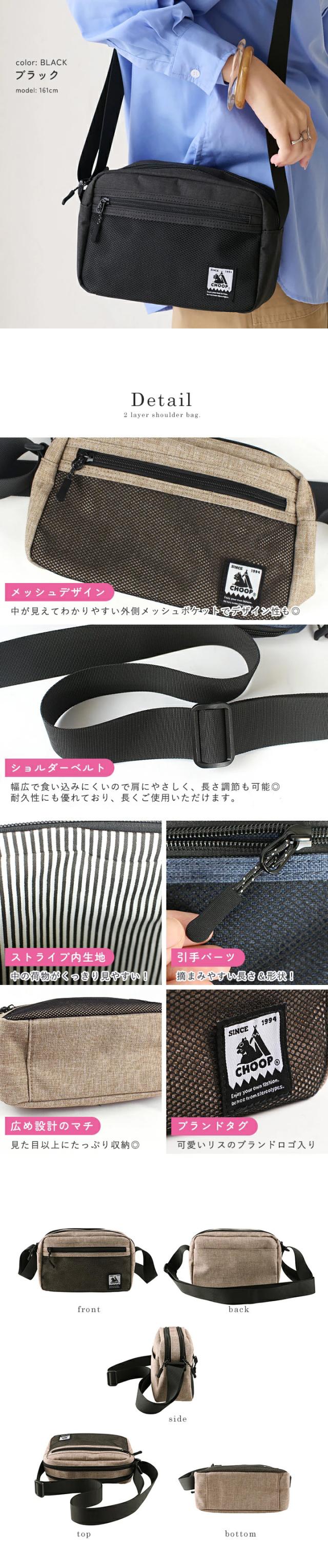 ショルダーバッグ CHOOP シュープ バッグ ミニショルダー レディース メンズ 斜めがけ 軽量 ミニバッグ 小さめ コンパクト 2層 かばん ワンショルダー はっ水加工 メッシュポケット ファスナー アウトドア お出かけ 旅行 シンプル ユニセックス ハリネズミ【c-60703】