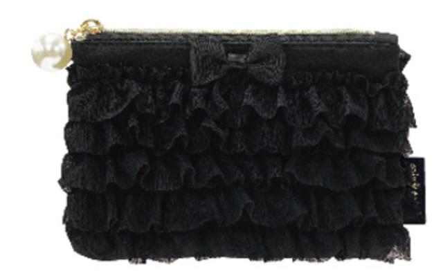 カミ221133 【送料無料】【オリジナル】【フリフリシリーズ】フリフリティッシュポーチ【ブラック】【黒】【ポーチ】【ケース】【小物入れ】【収納】【コスメ】【化粧】【メイク】【雑貨】【グッズ】【かわいい】
