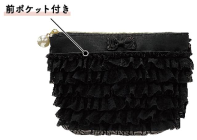 カミ221127 【送料無料】【オリジナル】【フリフリシリーズ】フリフリソコマチポーチ【ブラック】【黒】【ポーチ】【ケース】【小物入れ】【収納】【コスメ】【化粧】【メイク】【雑貨】【グッズ】【かわいい】
