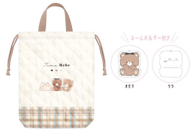 【オリジナル】シューズバッグ【フワベベ】【くま】【ベア】【動物】【アニマル】【キルティングタイプ】【カバン】【かばん】【鞄】【ケース】【鞄入れ】【収納】【学校】【保育園】【幼