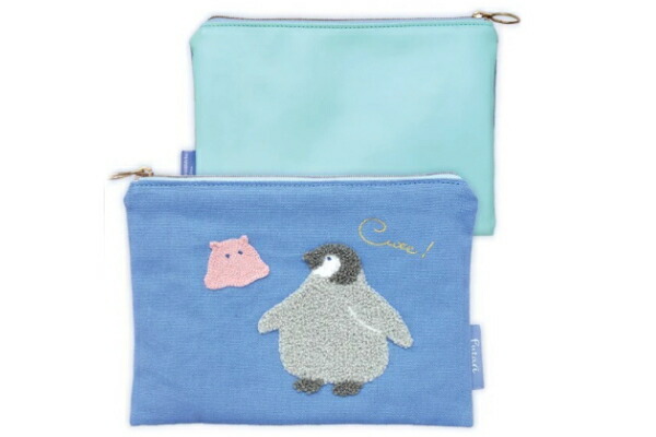 ナイ045637 【海中散歩】ふたりポーチ【スカイブルー×ライトブルー】【メンダコとペンギン】【海の生き物】【ポーチ】【ケース】【小物入れ】【収納】【メイク】【化粧】【コスメ】【雑貨】【グッズ】【かわいい】