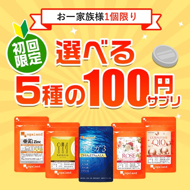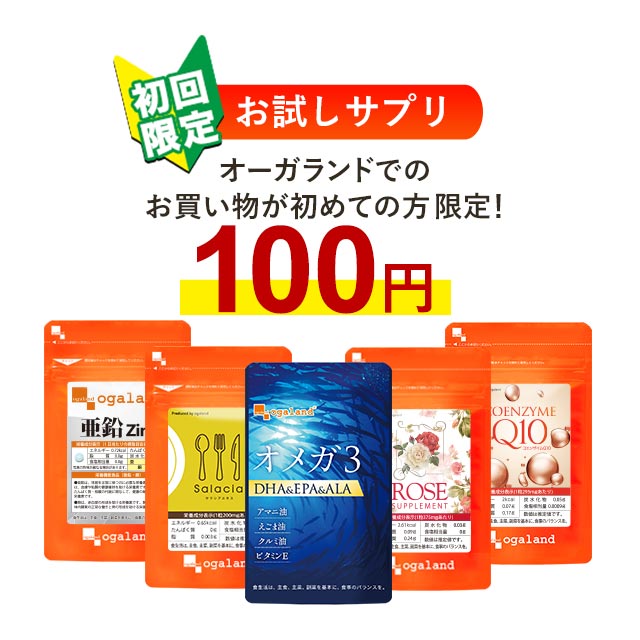 【初回限定】5種類から選べるお試し100円サプリ(各約1ヶ月分) ご購入はオーガランドでのお買い物が初めての方限定となりますことをご了承ください! サプリ サプリメント お試し 送料無料 オーガランド DHA EPA オメガ3 亜鉛 サラシア ローズ コエンザイムQ10