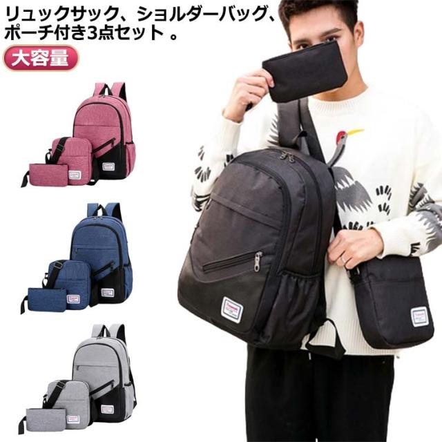 ショルダーバッグ ポーチ付き 多機能リュック アウトドア メンズ バックパック リュックサック ビジネスリュック 大容量 レディース ビジネス 通勤 通学 通学 通勤バッグ 軽量 パソコン 3点セット