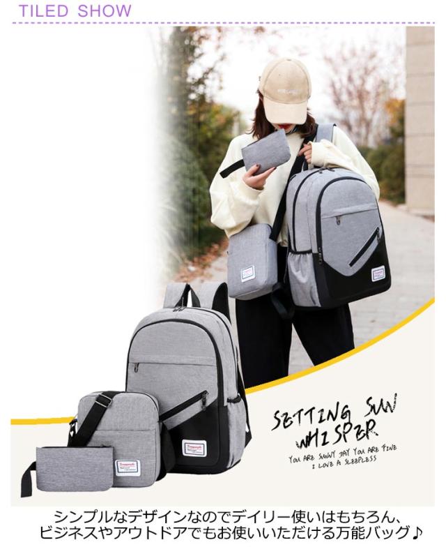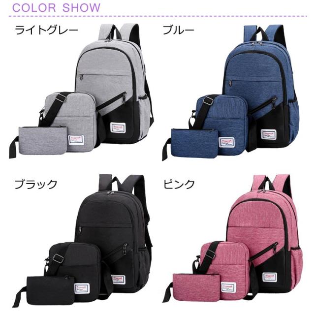 | リュックサック、ショルダーバッグ、ポーチ付き3点セット 。 シンプルなデザインなのでデイリー使いはもちろん、ビジネスやアウトドアでもお使いいただける万能バッグ♪ ハンドバッグ、ショルダーバッグは用途に合わせ、お使いいただけるうえに必要な分を小分けに整頓できて便利♪ 通気性、撥水性も抜群なオックスフォード布を使用しているので雨の日でも大切な荷物を安全に守ってくれます。 | |